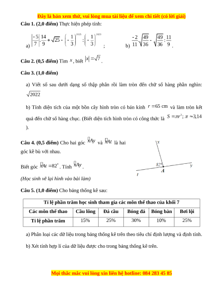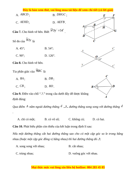 Đây là bản xem thử, vui lòng mua tài liệu để xem chi tiết (có lời giải)