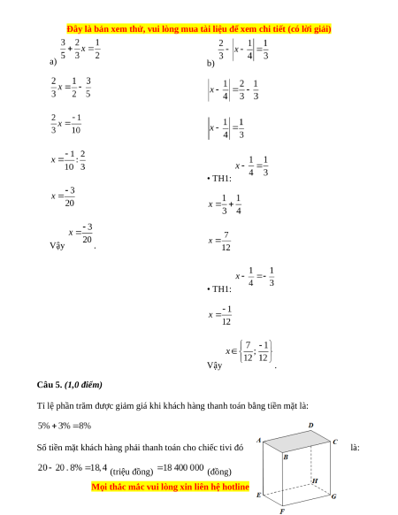 Câu 5. (1,0 điểm) Giá niêm yết của một chiếc tivi ở cửa hàng là 20 triệu đồng. Nhân dịp