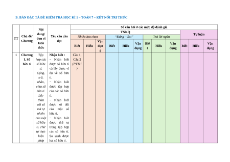 B. BẢN ĐẶC TẢ ĐỀ KIỂM TRA HỌC KÌ 1 – TOÁN 7 – KẾT NỐI TRI THỨC
