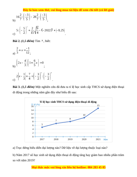 Bài 3. (1,5 điểm) Một nghiên cứu đã đưa ra tỉ lệ học sinh cấp THCS sử dụng điện thoại