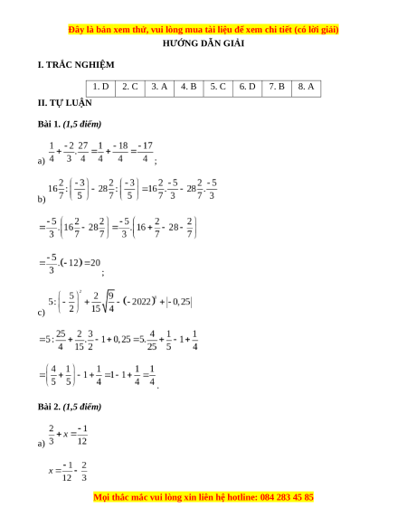Đây là bản xem thử, vui lòng mua tài liệu để xem chi tiết (có lời giải)