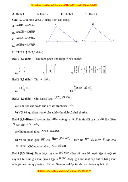 Đây là bản xem thử, vui lòng mua tài liệu để xem chi ết (có lời giải)