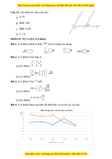 Câu 1. Cho hình vẽ bên, biết Số đo là: A. . B. . C. . D. . Câu 2. Số