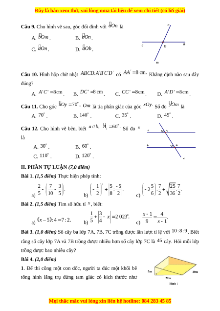 Câu 9. Cho hình vẽ sau, góc đối đỉnh với là n A. . B. . b a O C. . D. . m