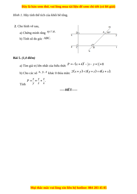 Hình 1. Hãy tính thể tích của khối bê tông. 2. Cho hình vẽ sau, a) Chứng minh rằng b) Tính số đo góc