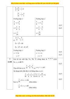 II. PHẦN TỰ LUẬN (7,0 điểm) Bài Nội dung Điểm 0,25 a) 0,25 0,25 1 b) (1,5đ) 0,25 . 0,25 c) 0,25 2 a) 0,25 (1,5đ) 0,25 b)