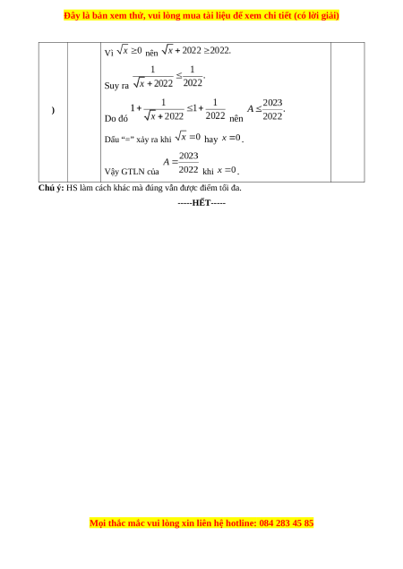 Bài 6. (0,5 điểm) Tìm giá trị lớn nhất của các biểu thức sau: với