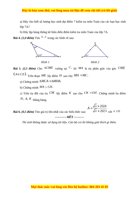 Bài 5. (2,5 điểm) Cho vuông tại kẻ