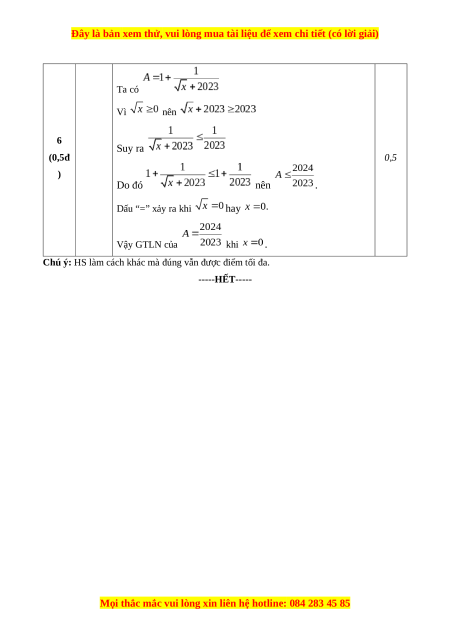 Bài 6. (0,5 điểm) Tìm giá trị lớn nhất của các biểu thức sau: -với -
