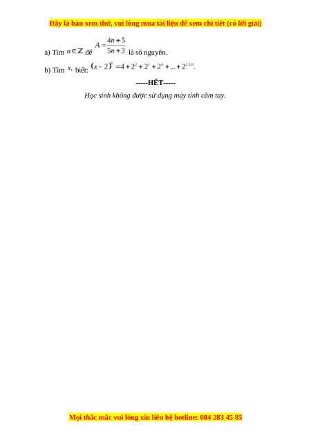 a) Tìm để là số nguyên. b) Tìm biết: -----HẾT-----