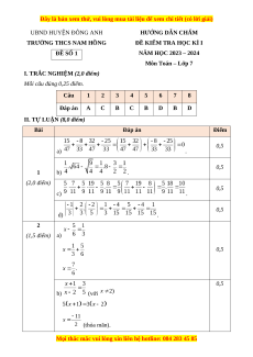 NĂM HỌC 2023 – 2024 Môn Toán – Lớp 7