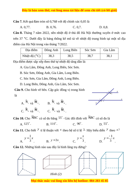 Chúng tôi đảm bảo đủ số lượng đề đã cam kết hoặc có thể nhiều hơn, tất cả có BẢN WORD, LỜI GIẢI CHI TIẾT và tải về dễ dàng.