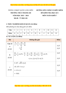 HƯỚNG DẪN CHẤM VÀ BIỂU ĐIỂM TRƯỜNG THCS THANH AM