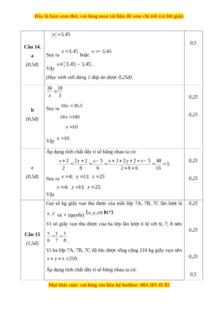 lượt tỉ lệ với 6; 7; 8. Hãy tính số kg giấy vụn thu được của mỗi lớp. Câu 16.