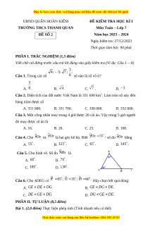 ĐỀ KIỂM TRA HỌC KÌ I ĐỀ SỐ 2 Môn Toán – Lớp 7