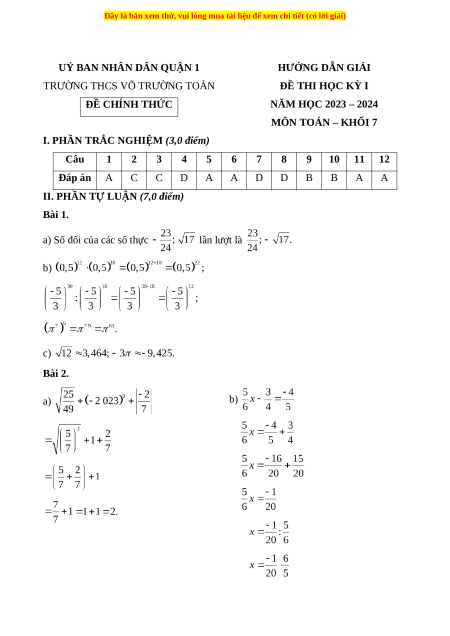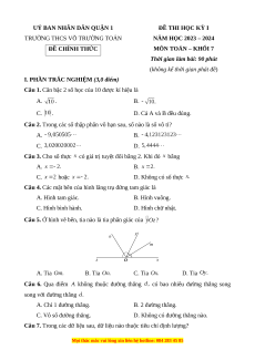 NĂM HỌC 2023 – 2024 ĐỀ CHÍNH THỨC MÔN TOÁN – KHỐI 7