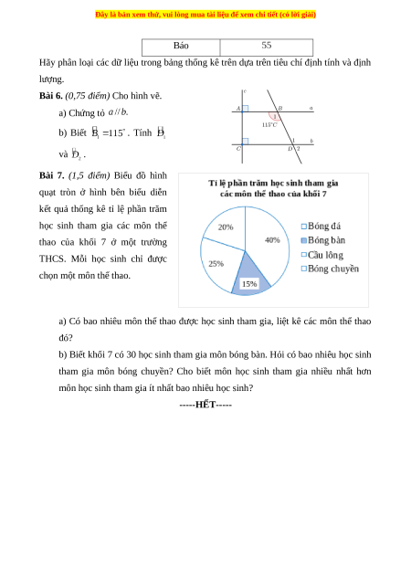 môn học sinh tham gia ít nhất bao nhiêu học sinh? -----HẾT-----