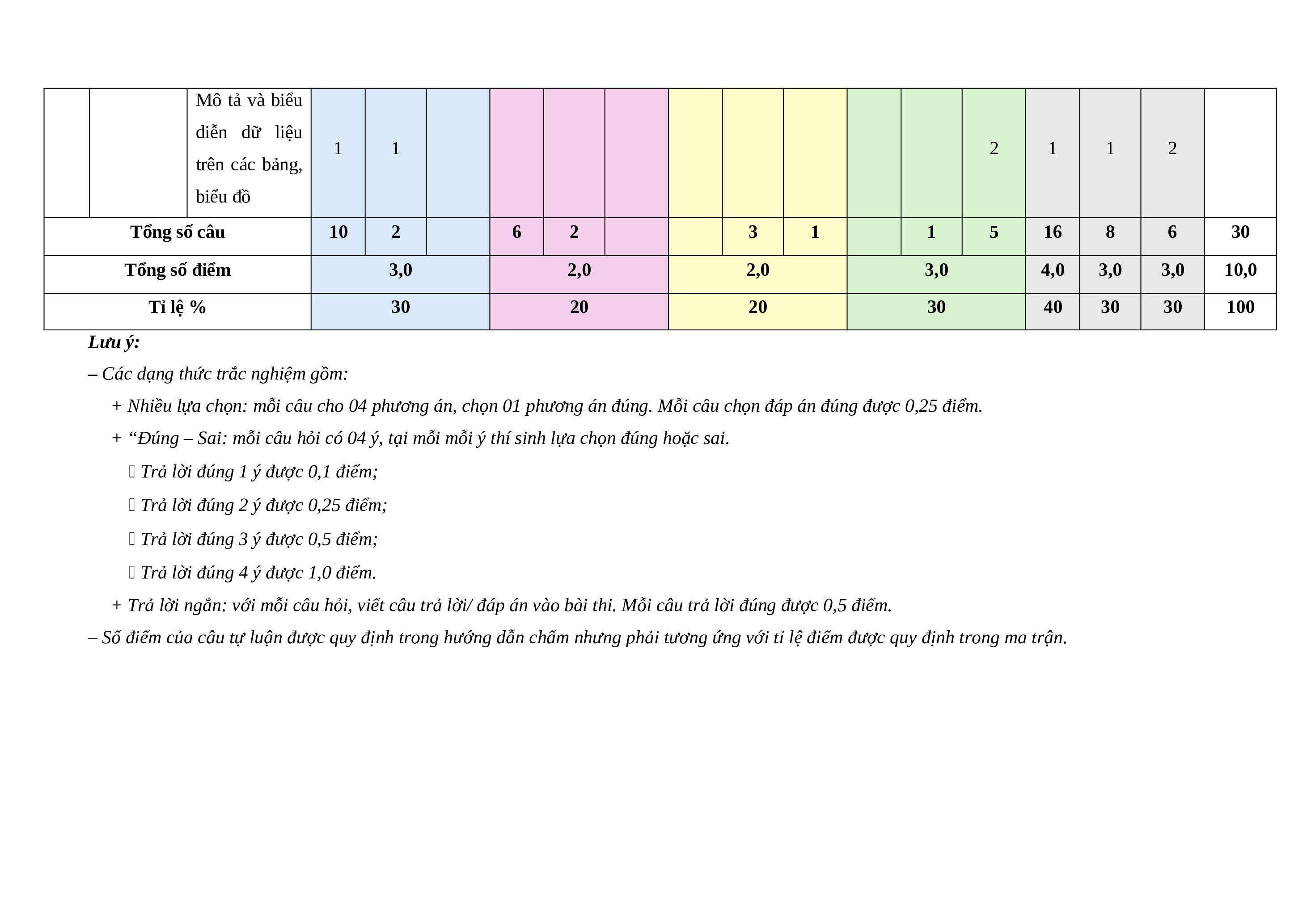 – Số điểm của câu tự luận được quy định trong hướng dẫn chấm nhưng phải tương ứng với tỉ lệ điểm được quy định trong ma trận.