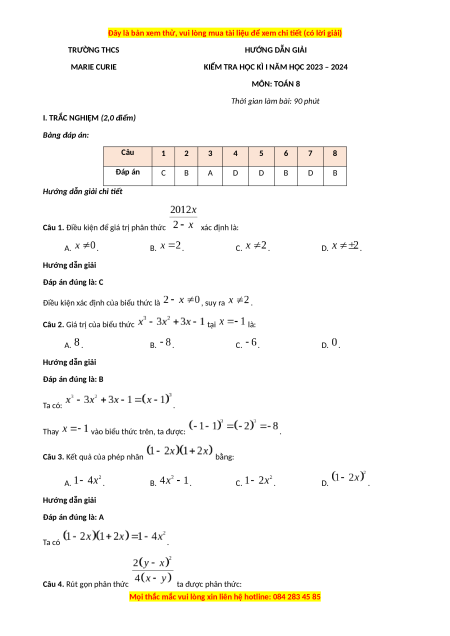 TRƯỜNG THCS HƯỚNG DẪN GIẢI MARIE CURIE