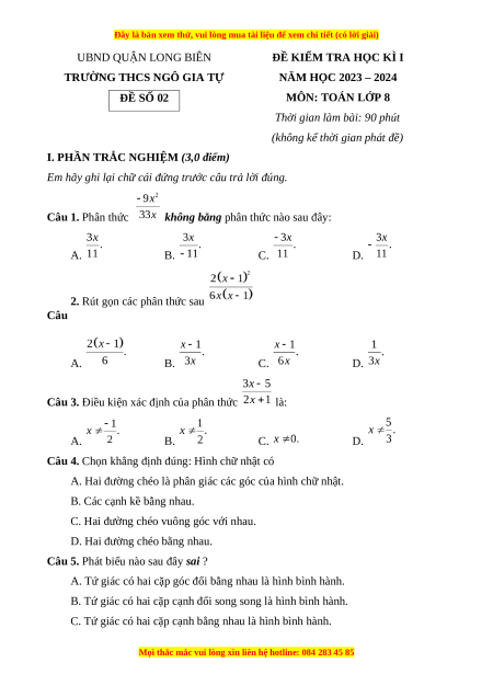 NĂM HỌC 2023 – 2024 ĐỀ SỐ 02 MÔN: TOÁN LỚP 8