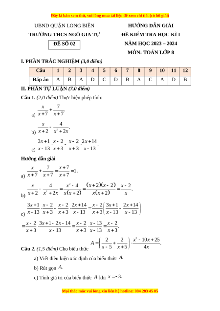 Đề thi cuối kì 1 Toán 8 Cánh diều Trường THCS Ngô Gia Tự-Long Biên-Hà Nội