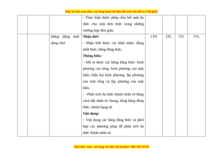 – Mô tả được các hằng đẳng thức: bình