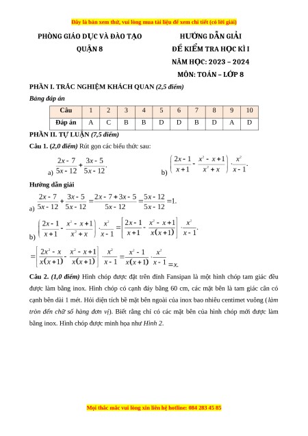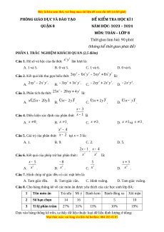 NĂM HỌC: 2023 – 2024 MÔN: TOÁN – L P 8 Ớ Th i gian làm bài: 90 phút ờ (không k th ể i gian phát đ ờ ) ề