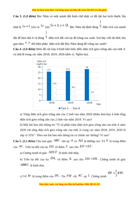 Câu 3. (1,0 điểm) Bác Năm có một mảnh đất hình chữ nhật có độ dài hai kích thước lần lượt là (m) và (m)