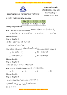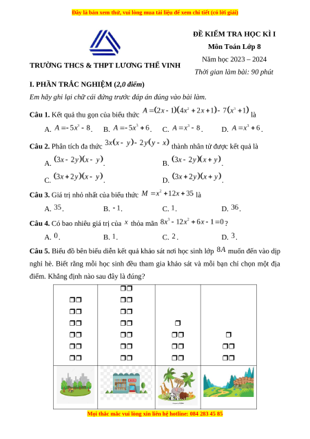 Đề thi cuối kì 1 Toán 8 Hà Nội trường THCS Lương Thế Vinh