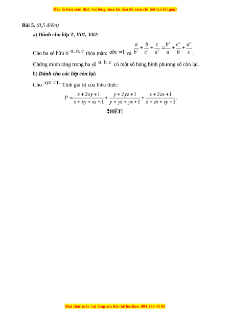 a) Dành cho lớp T, V01, V02: Cho ba số hữu tỉ thỏa mãn: và .