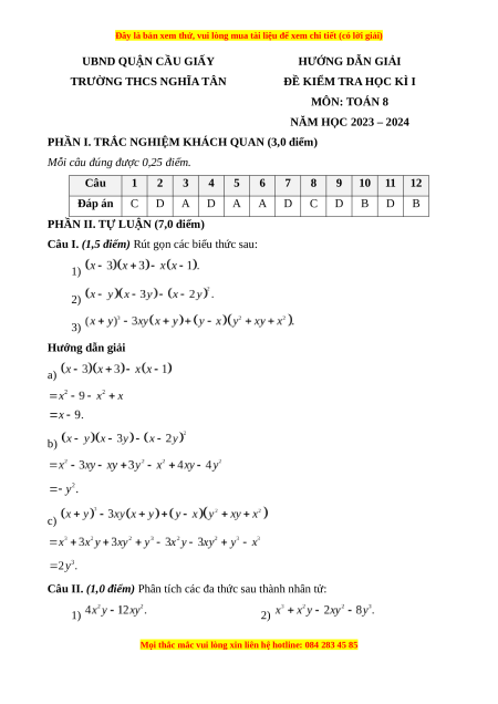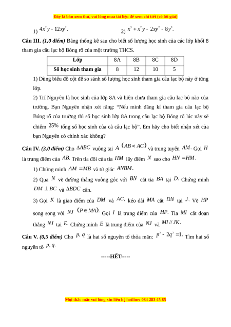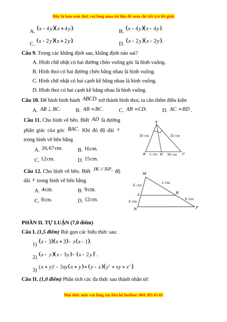 Câu 8. Phân tích đa thức