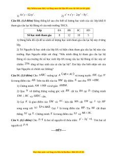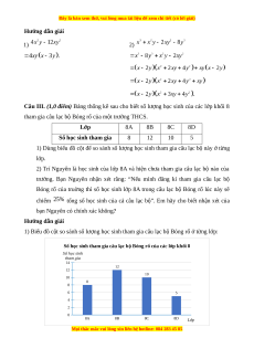 Câu III. (1,0 điểm) Bảng thống kê sau cho biết số lượng học sinh của các lớp khối 8