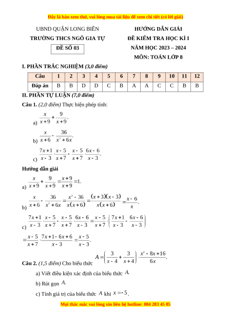 Đề thi cuối kì 1 Toán 8 Hà Nội trường THCS Ngô Gia Tự Đề 2
