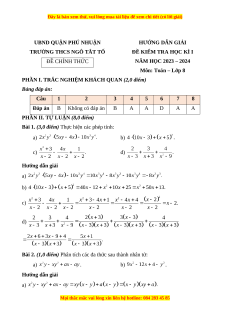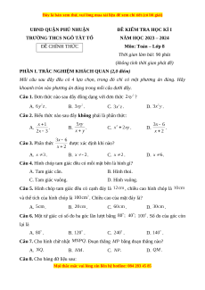 Đề thi cuối kì 1 Toán 8 Hồ Chí Minh trường THCS Ngô Tất Tố