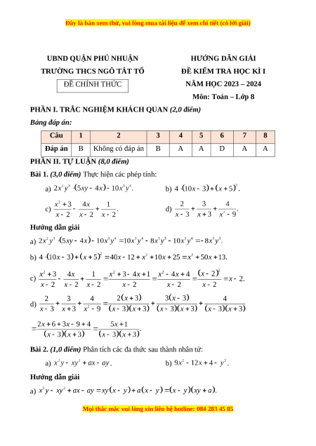 UBND QUẬN PHÚ NHUẬN HƯỚNG DẪN GIẢI