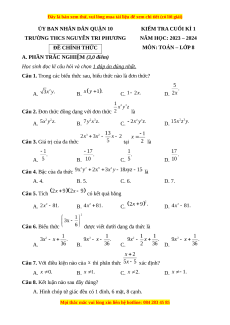 Câu 4. Bậc của đa thức là A. 4. B. 5. C. 6. D. 7. Câu 5. Tích có kết quả bằng A. B. C. D. Câu 6. Biểu thức