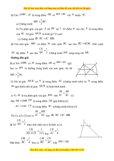 tại Vẽ điểm sao cho là trung điểm của Tứ giác là hình gì? Vì sao? c) Chứng minh 2) Cho tam giác có điểm trên cạnh sao cho Trên cạnh lấy điểm sao cho Chứng minh song song với