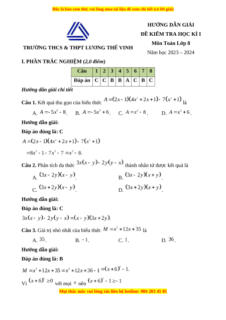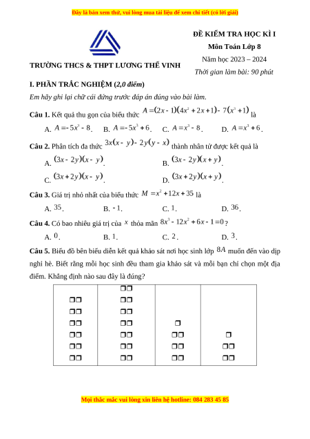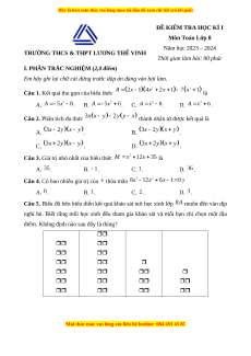 ĐỀ KIỂM TRA HỌC KÌ I Môn Toán Lớp 8 Năm học 2023 – 2024