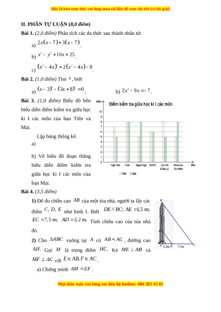 Tính chiều cao của tòa nhà đó. 2) Cho vuông tại có , đường cao Gọi là trung điểm Kẻ và với . a) Chứng minh .