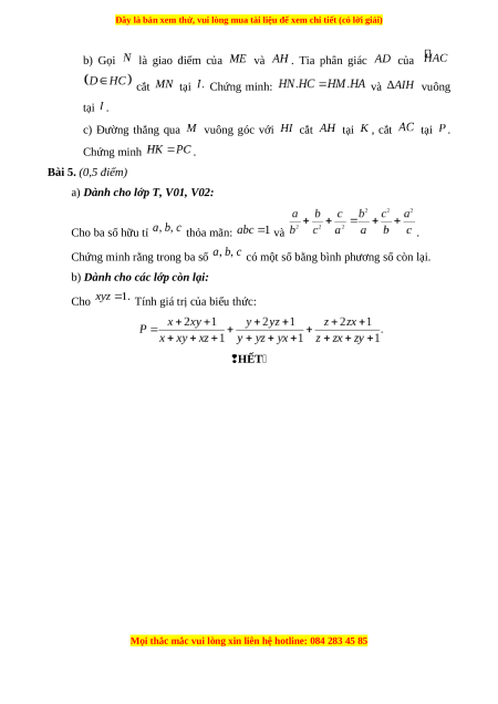 Bài 5. (0,5 điểm)