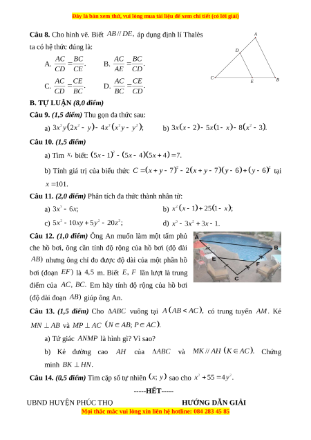 Câu 14. (0,5 điểm) Tìm cặp số tự nhiên sao cho -----HẾT----- UBND HUYỆN PHÚC THỌ HƯỚNG DẪN GIẢI