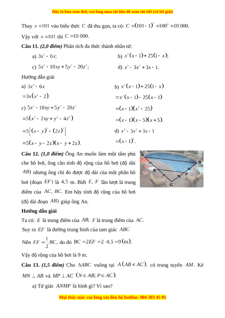 Câu 11. (2,0 điểm) Phân tích đa thức thành nhân tử: a) b) c) d) Hướng dẫn giải a) b) c) d)