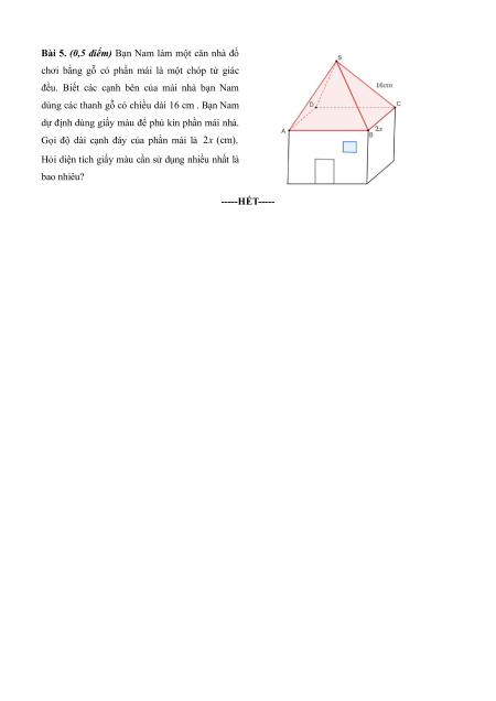 Bài 5. (0,5 điểm) Bạn Nam làm một căn nhà đồ