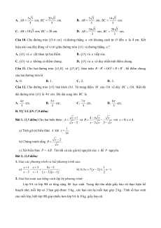 Câu 9. Cho tam giác ABC vuông tại A có AC 10 cm,C 60 . Độ dài hai cạnh còn lại là A. 5 3 20 3 AB cm; BC cm. B. 5 3 14 3 AB cm; BC cm. 3 3 3 3