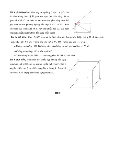 Bài 5. (0,5 điểm) Nam làm một chiếc hộp không nắp dạng