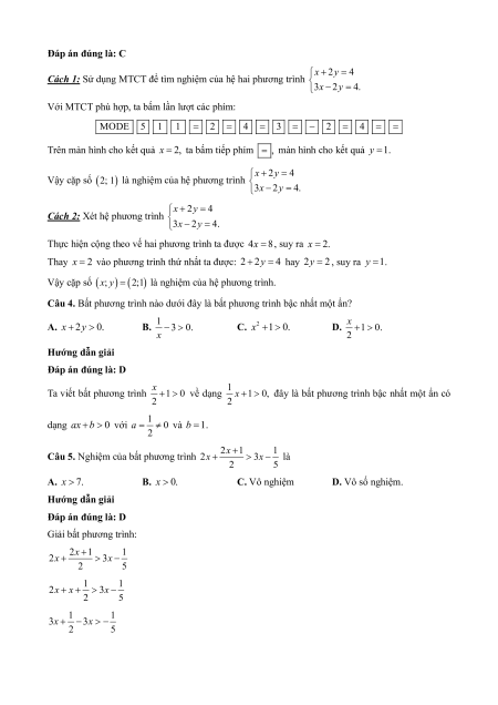 Câu 4. Bất phương trình nào dưới đây là bất phương trình bậc nhất một ẩn?
