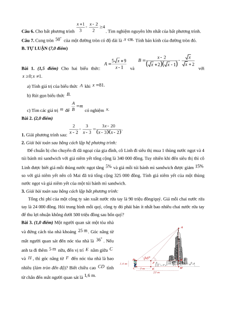 Bài 3. (1,0 điểm) Một người quan sát một tòa nhà
