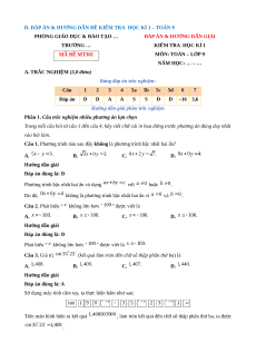 D. ĐÁP ÁN & HƯỚNG DẪN ĐỀ KIỂM TRA HỌC KÌ 1 – TOÁN 9
