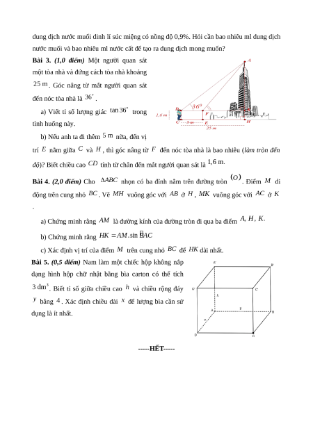 Bài 5. (0,5 điểm) Nam làm một chiếc hộp không nắp