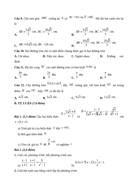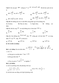 (kết quả làm tròn đến chữ số thập phân thứ ba) là A. B. C. D. Câu 9. Cho tam giác vuông tại có
